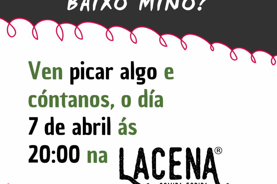 O vindeiro martes 7 de abril ás 20:00 horas terá lugar na Lacena, tenda de alimentación a granel da Guarda, o segundo evento de lanzamento do proxecto Fíos. Desenvolvido na comarca do Baixo Miño, especialmente nos concellos de Tomiño e A Guarda, a iniciativa busca… Leer más »A Guarda acolle o lanzamento do proxecto Fíos cun encontro participativo sobre as preocupacións medioambientais do Baixo Miño